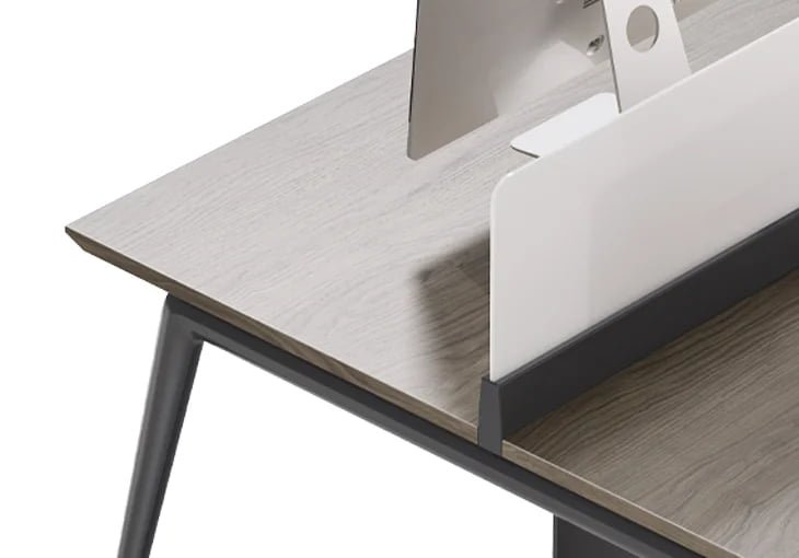 職員桌短櫃、長櫃、無櫃因需選擇,均可無限續接,長短櫃混搭還可適用於1+n的小組聯動模式,打造更加靈活多變的空間布局。通體台面的職員對桌中間無拼接,一體觀感更顯大氣。